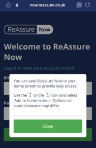 If you’ve missed the prompt, you can go into your browser options and add the ReAssure Now log in page to your favourite device location.